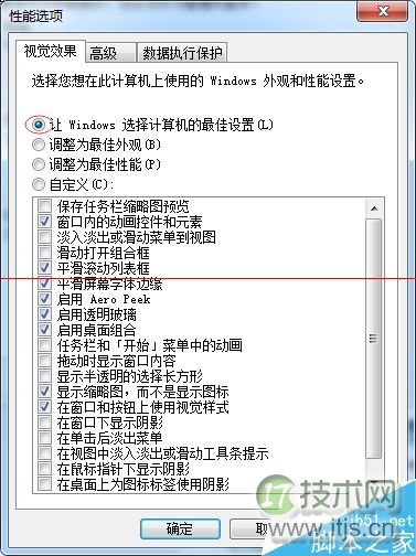 1)让Windows选择计算机的最佳设置:该项表示使用系统默认设置,建议初级用户或者对系统不熟悉的用户采用该项设置。