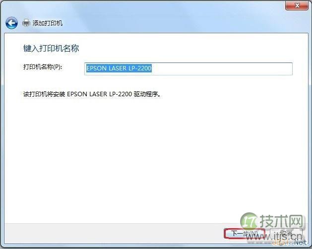 5、系统会显示出您所选择的打印机名称,确认无误后,点击“下一步”进行驱动安装。