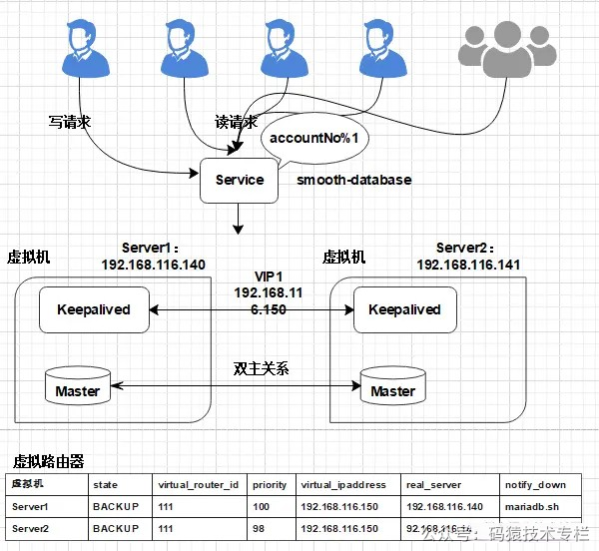 复制use mysql; delete from user; ## 配置root用户使用密码654321从任何主机都可以连接到mysql服务器 GRANT ALL PRIVILEGES ON *.* TO root@% IDENTIFIED BY 654321 WITH GRANT OPTION; FLUSH PRIVILEGES;1.2.3.4.5.6.7.2.1.2 MariaDB双主同步在Server1增加配置: