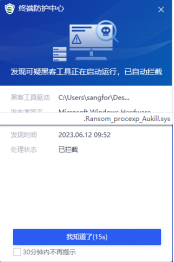 通过深瞻实验室与aES团队的合作,在深信服aES的勒索防护模块和SAVE引擎中,已能实现针对BYOVD威胁的自动化防护,当此攻击发生时,深信服EDR将自动拦截,并将关联的攻击信息同步到云端以进一步触发威胁事件告警或威胁事件响应等。