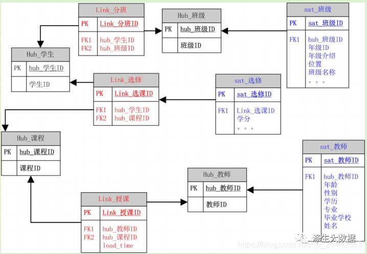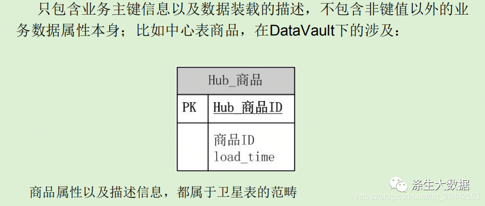 中心表-Hub :唯一业务键的列表,唯一标识企业实际业务,企业的业务主体集合。 链接表-Link:表示中心表之间的关系,通过链接表串联整个企业的业务关联关系。卫星表- Satellite:历史的描述性数据,数据仓库中数据的真正载体。1)中心表-Hub