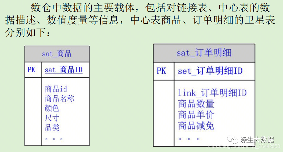 比如商品,单一主键:商品ID,属性包括产地、颜色、材质、尺寸、单价等, 但并非属性一定是文本,比如单价、尺寸,均为数值型描述性的,日常主要的维度抽象包括:时间维度表、地理区域维度表等。