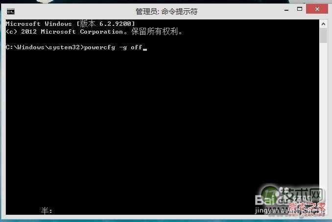 在CMD界面输入: powercfg -h off 命令,系休眠如下图: