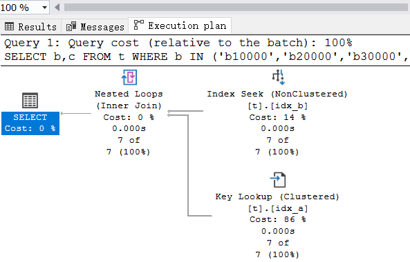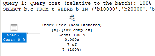 SET STATISTICS IO ONSET STATISTICS TIME ONSELECT b,c FROM t WHERE b IN (b10000,b20000,b30000,b40000,b50000,b70000,b80000,b90000)SETSTATISTICS IO OFF