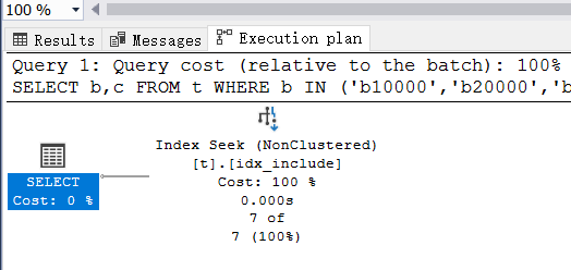 DROP INDEX idx_complex ON dbo.t;CREATE INDEX idx_include ON t(b) INCLUDE (c)1.2.3.再次查询输出如下:
