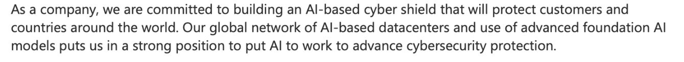 Brad Smith 声称,微软未安网络在最近几个月微软内部得出了结论,提出黑客利用网络进行攻击的全倡速度、规模与复杂性正不断提高,议宣因此需要采取新的改善攻击应对措施,以追求“新一代的内部网络安全保护”,“未来安全倡议”也因此诞生。