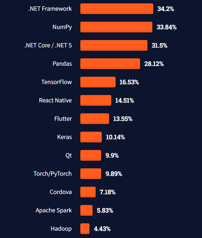 Django、Flask 和 Spring 的开发者满足于继续使用他们熟悉的框架,很少有开发者希望使用 ASP.NET。
