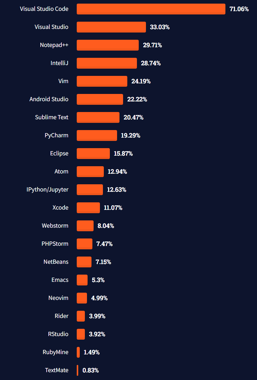 Visual Studio Code 显然已成为开发者的首选 IDE,并且具有明显的领先优势。