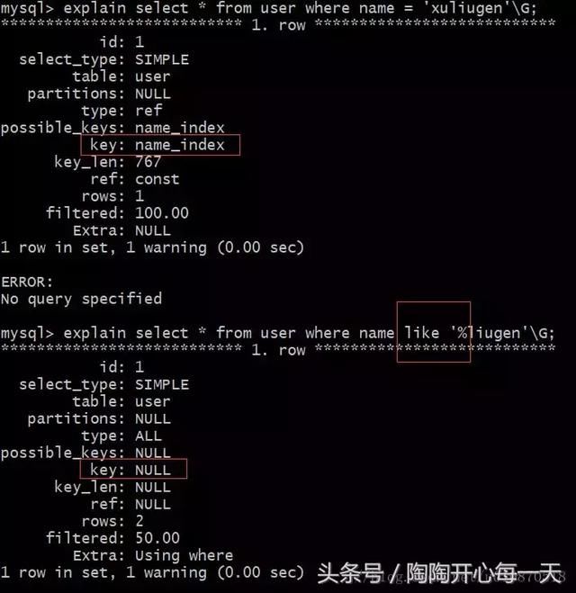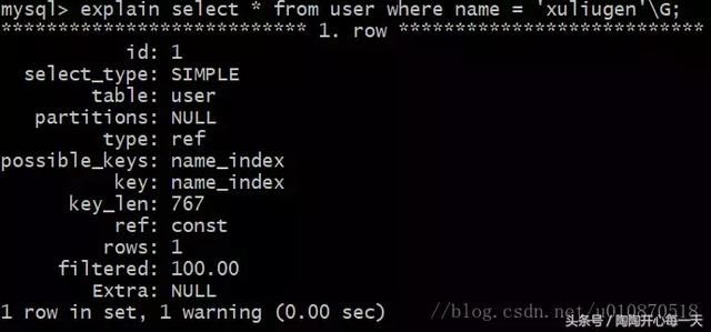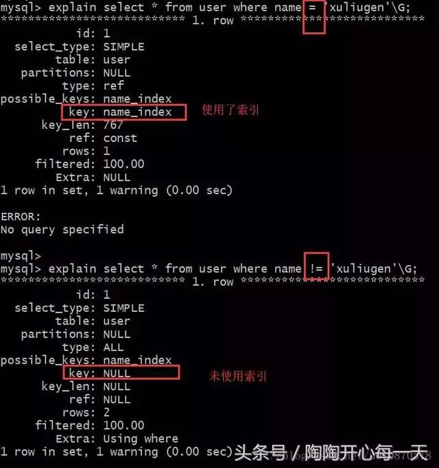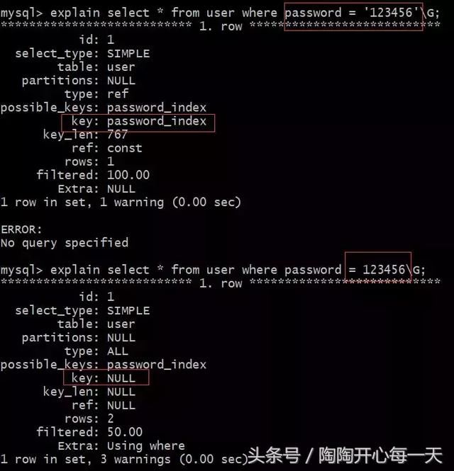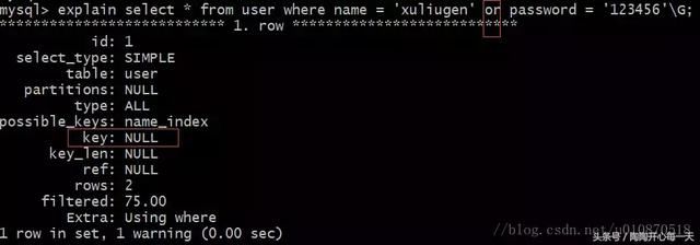 4、如果列类型是字符串,那一定要在条件中将数据使用引号引用起来,否则不会使用索引;