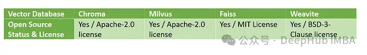 1、开源协议作为项目的最主要的一个选择标准就是开源的协议类型。一般向量数据库类软件倾向于选择对商业和开源社区都友好的许可证,以鼓励技术的采用和发展。上面的四个库也不例外