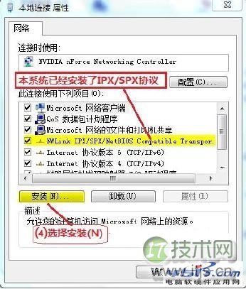 上面的步骤就是在Windows 7中安装IPX/SPX协议的方法,Vista中安装IPX/SPX协议与Windows 7相似,而XP系统都有自带的IPX/SPX协议。免费源码下载