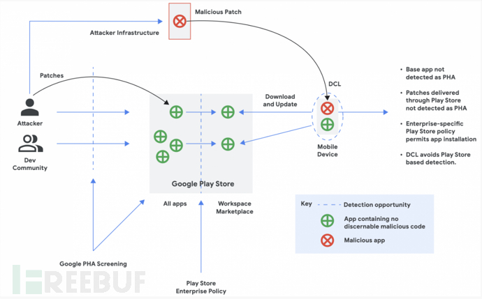 谷歌表示,所有提交到 Play Store 的应用程序和补丁都要经过严格的 PHA(潜在有害应用程序)筛选,但 "其中一些控制 "被 DCL 绕过。