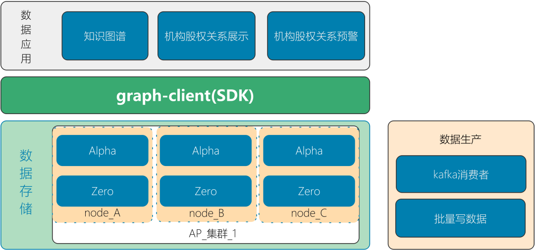 设计业务数据由大数据部门统一收集,再通过 Kfaka 消息发送给我们,我们再通过 Dgraph 的 java 客户端写入到 Graph。由于数据量较大,时间较紧,我们采取批量接受 Kafka 消息,经过转换数据,再批量写入数据到 Dgraph 的方式提高导入数据效率,在测试环境,每万条数据只需要数秒时间,生产环境应当更快。