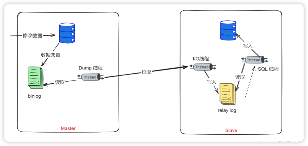 MySQL 的主从复制基于 binlog 实现,其主要过程如下:图片从服务器在开启主从复制后,将会创建两个线程:I/O 线程与 SQL 线程。从服务器的 I/O 线程会尝试与主服务器建立连接,主服务器