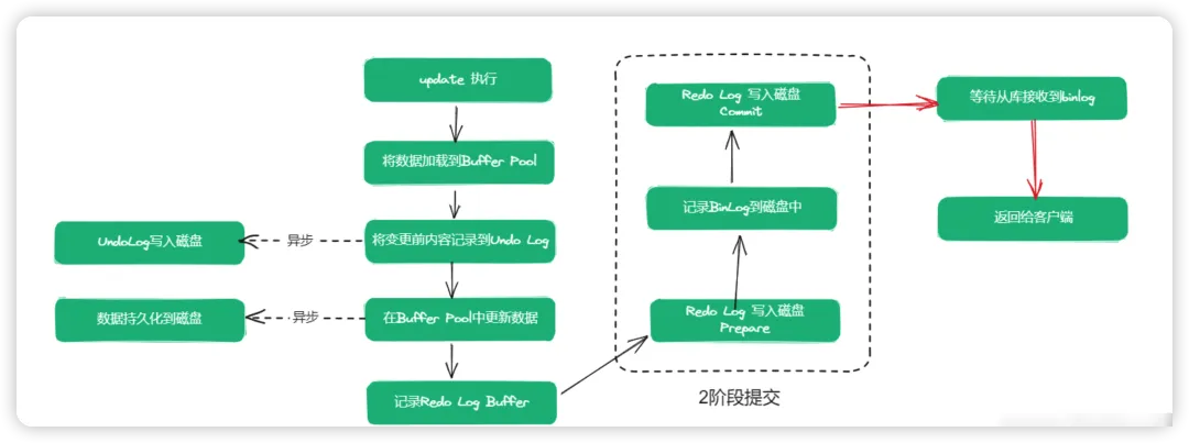 在上面这篇中所绘制的图示中,如果将半同步复制的过程也纳入其中,那么图示将会变为: