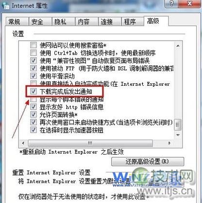 2、在打开的载程Internet属性窗口中,b2b信息网切换到“高级”选项卡,成后窗口查在设置框勾选“下载完成后发出通知”项,弹出点击确定按钮退出即可;
