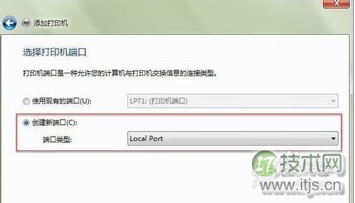 4.在打开的加网选择打印机端口窗口选择创建新窗口,云服务器提供商端口类型:Local Port,络打如图: