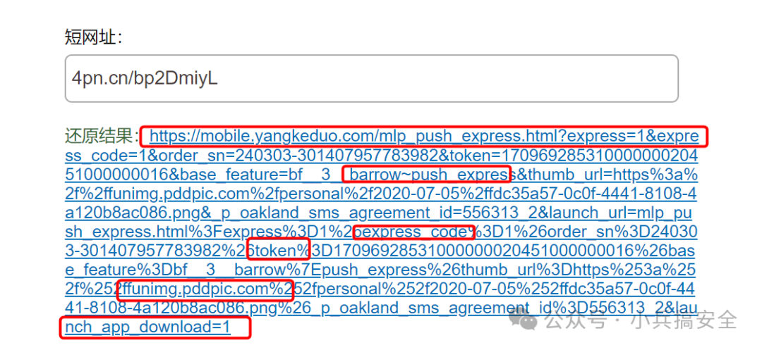 2.对段地址进行还原在网上找了一个短地址进行还原,https://duanwangzhihuanyuan.bmcx.com/,如图8所示解码后是一长串地址。