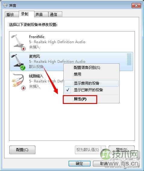 打开声音设备设置对话框,法图找到需要设置的语音设备。QQ语音也就是杂音麦克风啦,打开属性