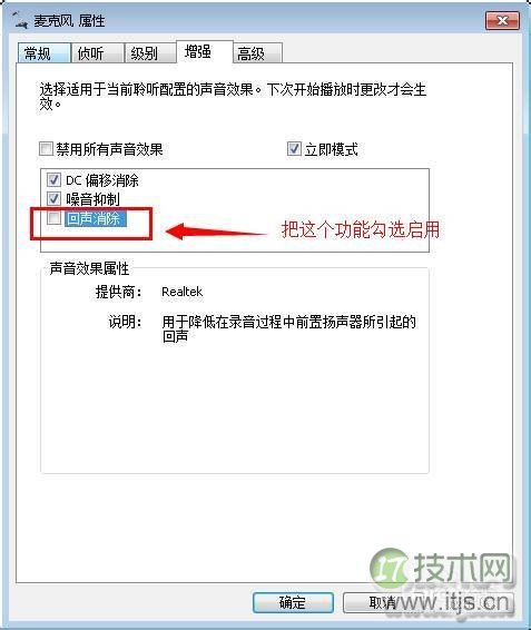 除此之外找到“增强”功能选项,决方吧“回声消除”功能开启,法图前面的勾勾勾选。注意禁用所有效果那个要去掉不然互相冲突哈