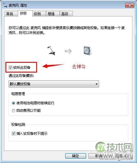 找到麦克风属性中—把“侦听此设备”前面那个勾去掉,然后保存。这样设置可以去掉麦克风底层的声音