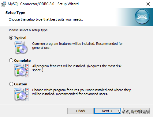 在“设置类型”对话框下,选择“典型”单选按钮并按“下一步”按钮: