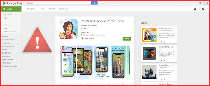 与类似的包含恶意应用程序一样,Craftsart Cartoon Photo Tools执行了其承诺的恶意一些功能。它将照片转换成卡通或绘画风格的软件图像--有许多应用程序可以做同样的事情--尽管一些评论说它只是给图像添加了一个过滤器。服务器托管然而,应用它包括一小段代码可以窃取用户的下载Facebook登录凭证,从而获得对其账户和任何其他可能重复使用相同登录/密码的量达服务的访问。