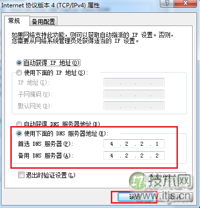 5、决办设置DNS服务器地址为:主用4.2.2.1,WordPress模板新失备用4.2.2.2,败提并点击确定退出。示错