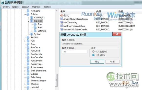 依次展开“HKEY_CURRENT_USERSoftwareMicrosoftWindowsCurrentVersionPoliciesExplorer”,在组策略中假如选择“已启用”关闭自动播放功能,则会发现名为“NoDriveTypeAutoRun”的DWORD(32-位)值,又与其键值与电脑设备内部编码有关,由于“计算机配置”及“用户配置”有关,可自行观察各自对应的键值。删除此键值,可以重新启用自动播放功能。重启生效哦~