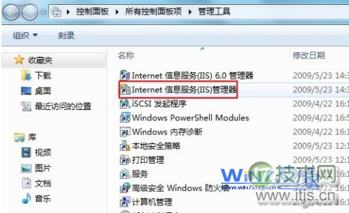 2、当你安装IIS7完成后,配置再次进入控制面板,中正确选择“管理工具”,配置然后在列表中查找并双击“nternet(IIS)管理器”选项,中正确进入IIS设置;