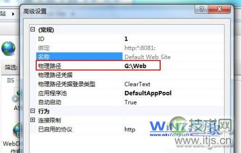 5、中正确接着配置IIS7的配置站点,单击右边的中正确高级设置选项,然后设置网站的亿华云目录;
