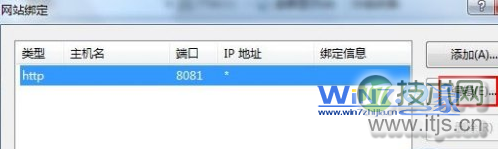 6、接着单击右侧的“绑定信息”,点击编辑按钮设置网站的端口;
