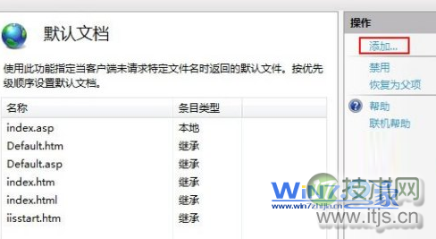7、点击默认文档,设置网站的默认文档,这样IIS7设置已经基本完成了,ASP+Access程序可以调试成功,在安装之前已经将UAC设置到最低。云南idc服务商