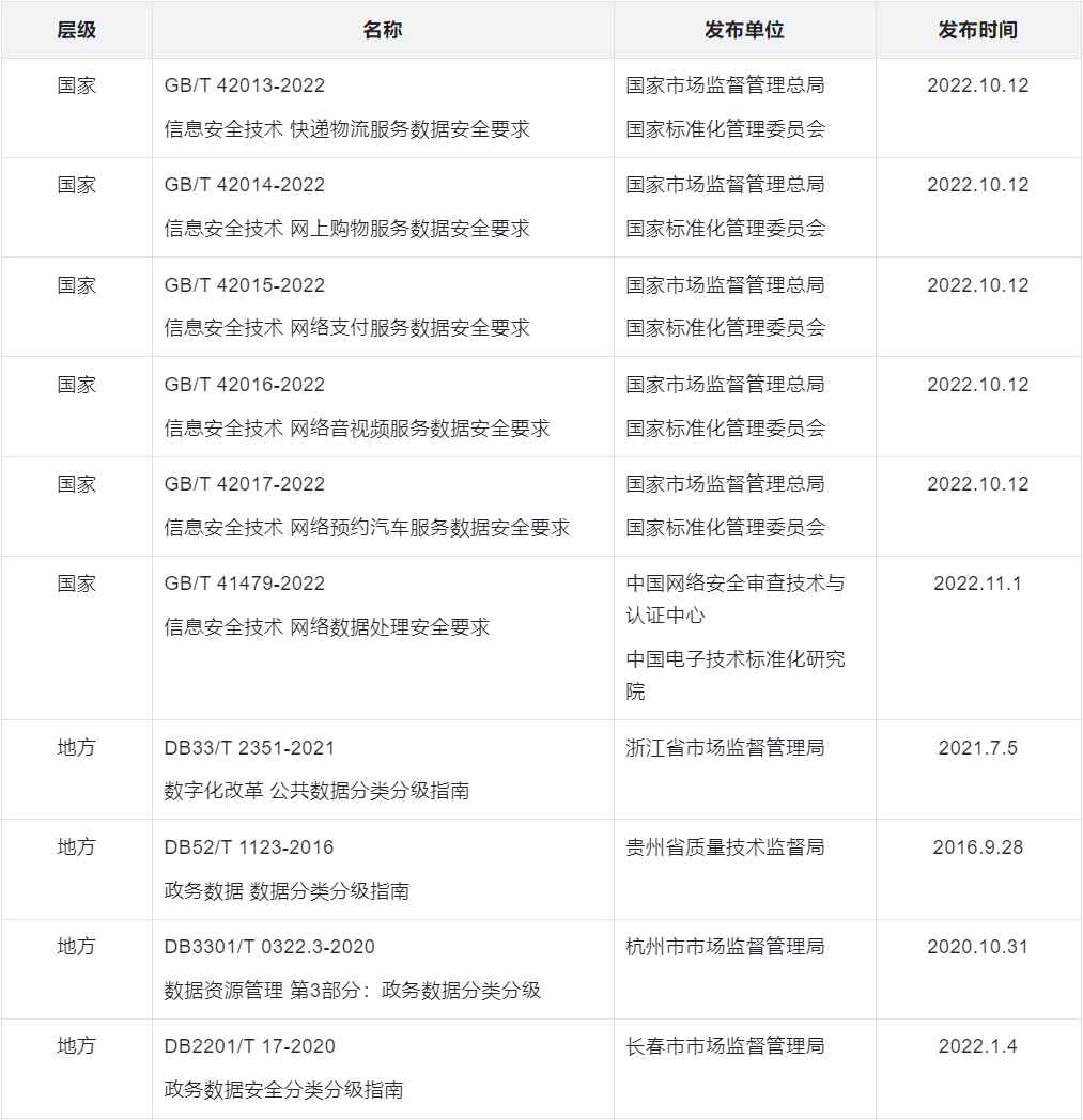在标准方面出台一系列国家或地方标准,粗略整理如下: