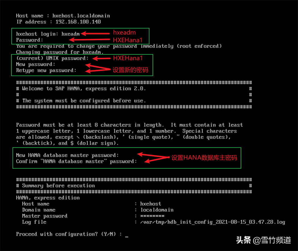 4 、设置新的 HANA database master 密码密码可以和上面设置的hxeadm密码一样,也可以不一样。
