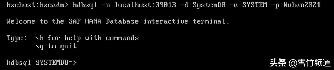 复制hdbsql -n localhost:39013 -d SystemDB -u SYSTEM -p <password>1.