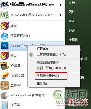 在使用Windows 7的过程中,系统会自动按使用频次在开始在开始菜单中列出最近经常访问应用程序。始菜这样大大方便了我们日常生活,制快但是香港云服务器捷实着同样带来一个问题,很多时候我们并不希望系统对个别程序进行记忆,此时我们可以在不想保留的应用程序名称上单击鼠标右键,在弹出的下拉列表中选择“从列表中删除”这样系统就将当前应用程序从列表中删除了。