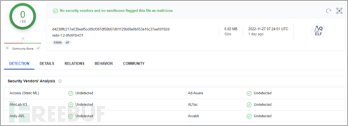 今天,上投AquaSec报告说,后门其易受CVE-2022-0543影响的恶意Redis蜜罐捕获了一个新的恶意软件,该恶意软件并没有被Virus Total上的云服务器提供商软件安全软件检测到。