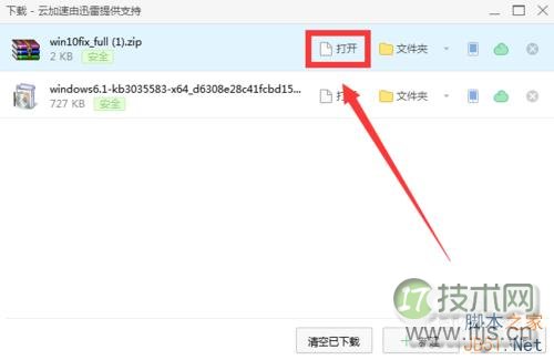 1、首先,安装下载安装一个名为win10fix_full.bat(Win10正式版升级预订通知修复补丁)的补丁命令文件,点击【下载】→【下载】。出现