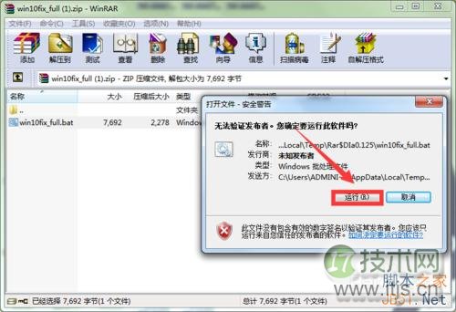 3、安装点击【运行】按钮,补丁以管理员身份运行。出现