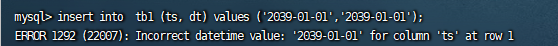 复制ERROR 1292 (22007): Incorrect datetime value: 2039-01-01 for column ts at row 11.