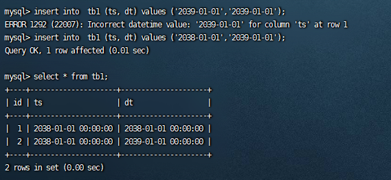 复制insert into tb1 (ts, dt) values (2038-01-01,2039-01-01);1.