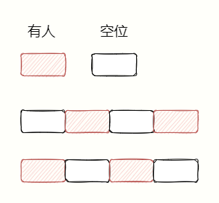 假设现在有 8 个座位,已经卖出了 4 张票,还有 4 张可以买。可是好巧不巧,买票的人很奇葩,分别间隔一个座位买票。