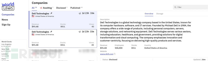 您的当前位置:首页 >数据库 >戴尔数据泄露事件:测试实验室平台遭 World Leaks 黑客组织入侵 正文