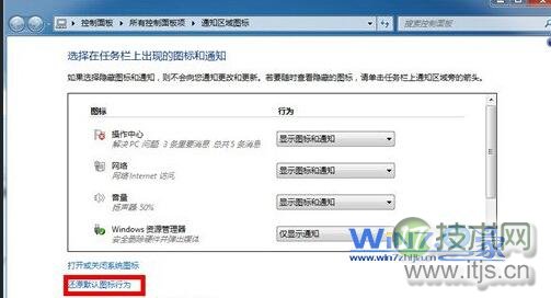 3、然后在弹出来的自定置通知区域图标界面中,点击下方的义后原恢“还原默认图标行为”,服务器租用然后点击确定按钮即可。复默
