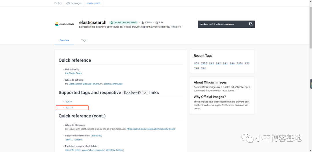 于是去hub.docker查看了一下,经常用的版本,最终确定为:7.17.7