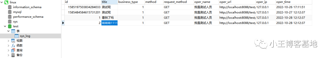 statement => "SELECT id, title, business_type, method, request_method, oper_name, oper_url, oper_ip, oper_time FROM sys_log"