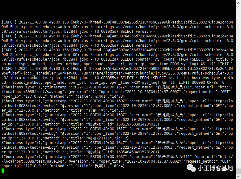 }1.2.3.4.5.6.7.8.9.10.11.12.13.14.15.16.17.18.19.20.21.22.23.24.25.26.27.28.29.30.31.32.33.34.35.36.37.38.39.40.41.42.43.44.45.46.47.48.49.50.51.52.53.54.55.新增几条记录,然后查看Logstash日志