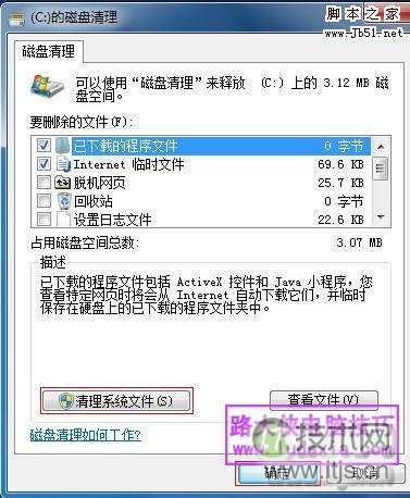 2. 点击“磁盘清理”,系统下会为您列出此盘下的磁盘文件类型,WordPress模板勾选您要删除的进行文件,点击“确定”按钮或“清理系统文件”按钮,清理系统就会自动为您清理磁盘。免费信息发布网系统下