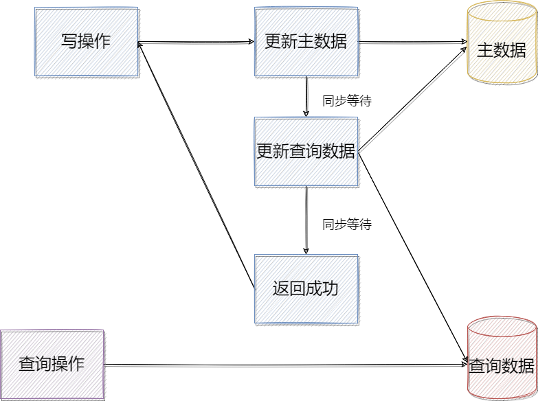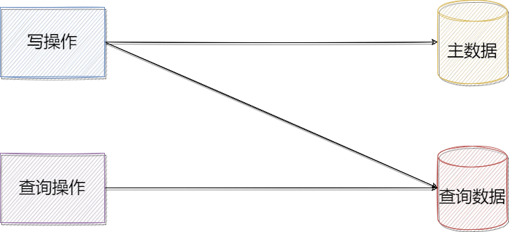 什么是查询分离?查询分离从字面上来说非常容易理解,其实就是查询在写数据时保存一个备份数据到另外的存储系统,在查询时直接从另外的分离存储系统中获取数据,如下图: